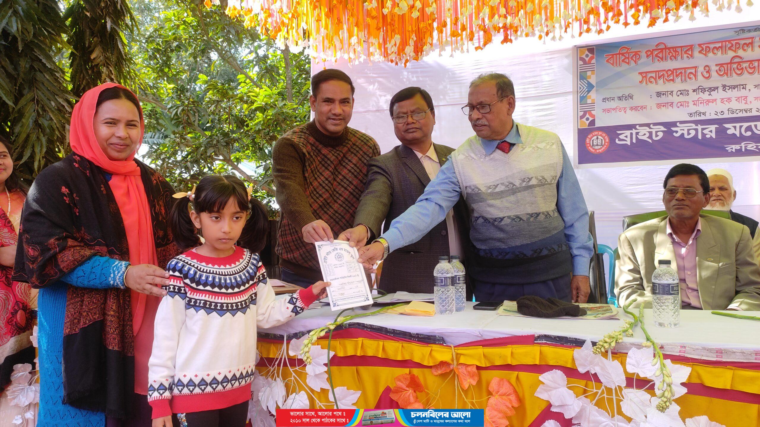 রুহিয়ায় ব্রাইট স্টার মডেল স্কুলের ফলাফল ঘোষনা ও সনদ বিতরণ