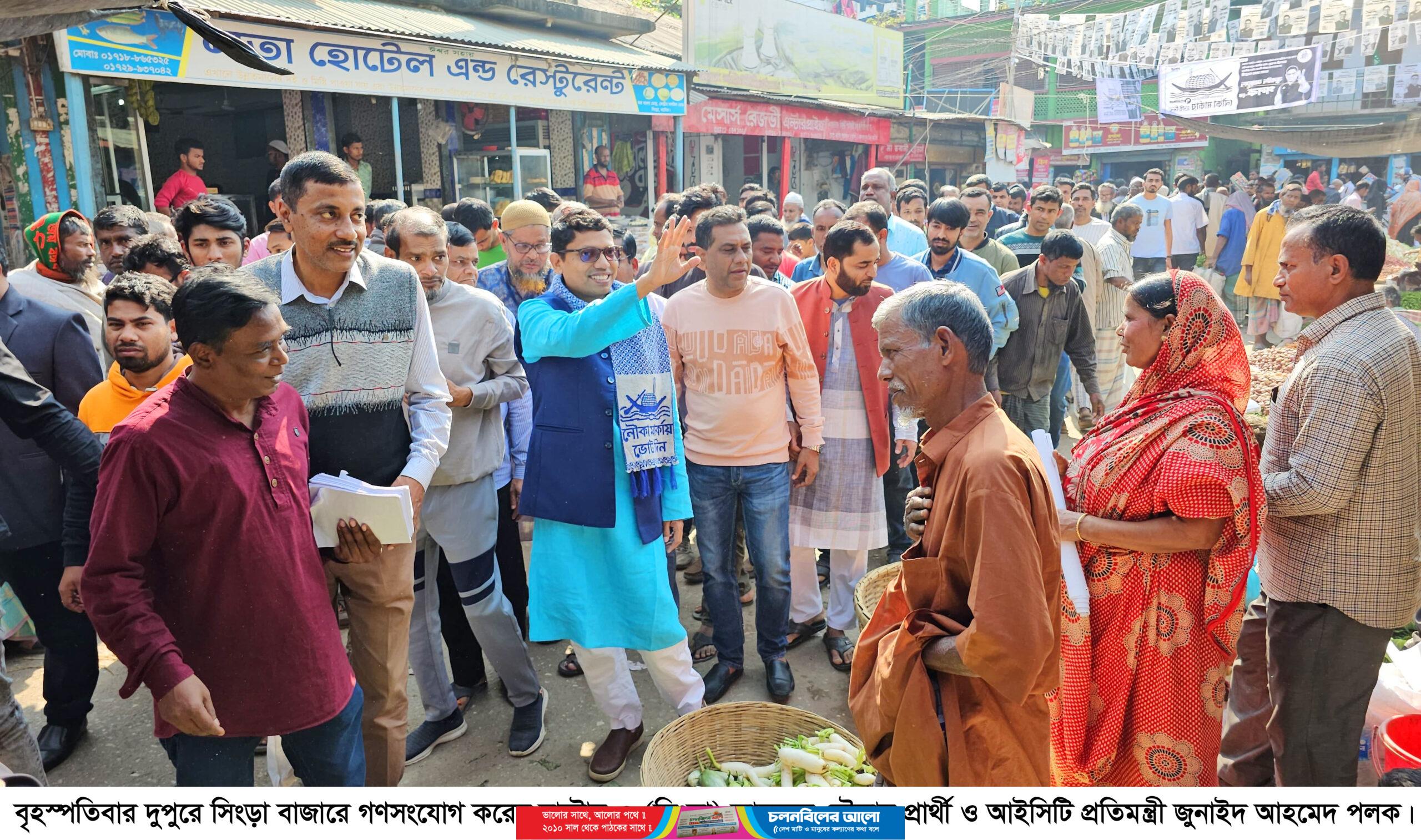 বৃহস্পতিবার (২৮ ডিসেম্বর) দুপুরে সিংড়া বাজারে গণসংযোগ করেন পলক। এসময় তার সময়ের বিভিন্ন উন্নয়নমূলক কর্মকান্ডের চিত্র তুলে ধরে ভোট প্রার্থনা করেন তিনি।