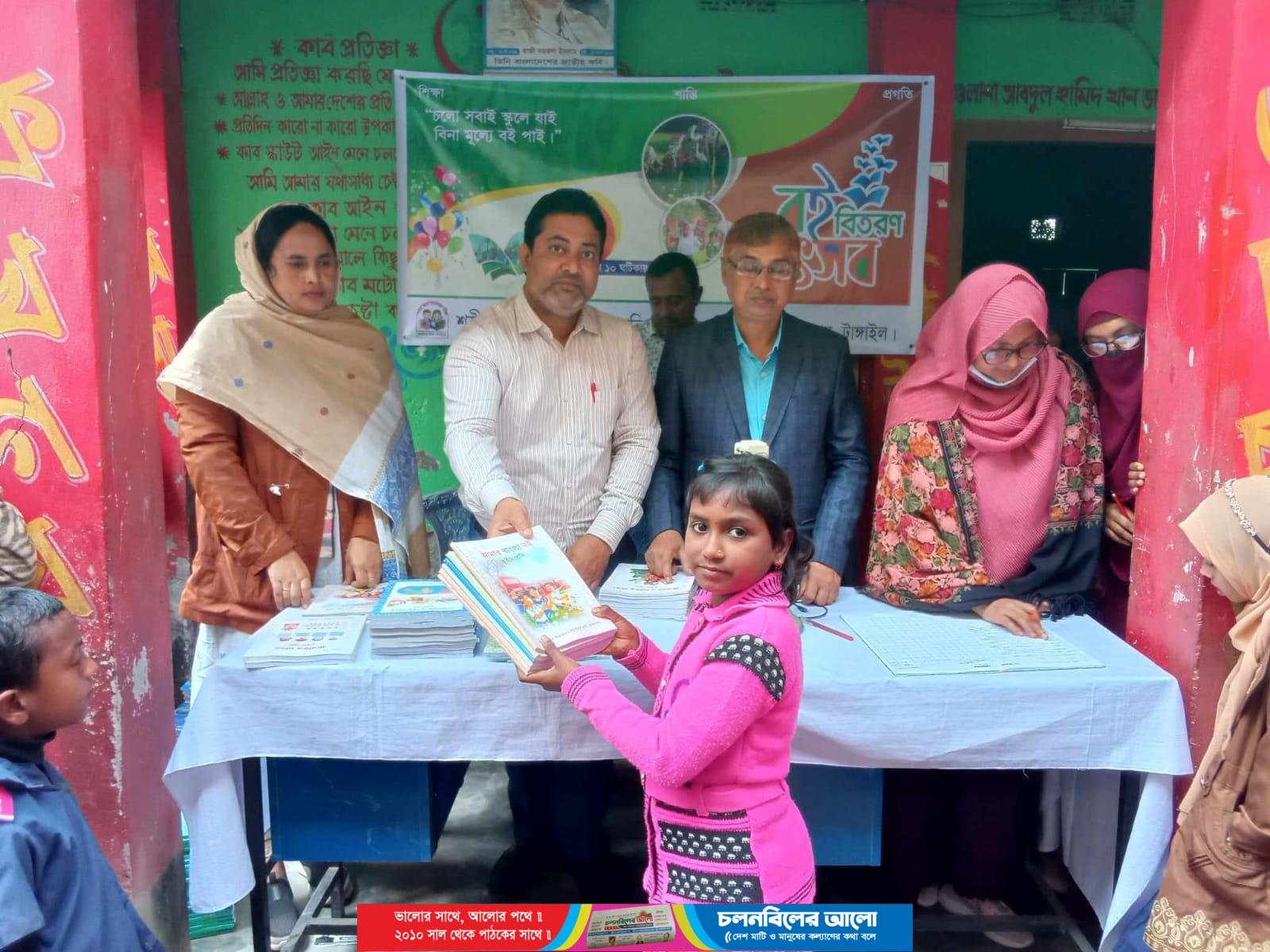 এসময় প্রাক(শিশু শ্রেনী)সহ প্রথম শ্রেণি থেকে পঞ্চম শ্রেণীর সকল শিক্ষার্থীদের হাতে নতুন বই তুলে দেওয়া হয়।নতুন বই হাতে পেয়ে শিক্ষার্থীরা আনন্দে বিদ্যালয় চত্বরে মেতে উঠে।