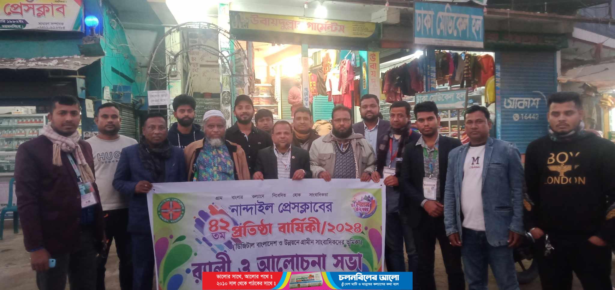 ময়মনসিংহের ঐতিহ্যবাহী নান্দাইল প্রেসক্লাবের ৪২তম প্রতিষ্ঠা বার্ষিকী রবিবার (৭ই জানুয়ারি) সন্ধ্যায় পালিত হয়েছে। প্রতিষ্ঠা বার্ষিকী উপলক্ষে কেক কাটা ও আলোচনা সভা অনুষ্ঠিত হয়। নান্দাইল প্রেসক্লাবের ৪২তম প্রতিষ্ঠা বার্ষিকীতে প্রধান অতিথি হিসাবে উপস্থিত ছিলেন ময়মনসিংহ বিভাগীয় প্রেসক্লাবের সাধারণ সম্পাদক মোঃ নজরুল ইসলাম। এসময় ঢাকা থেকে আগত সাংবাদিকরা প্রেসক্লাবের ৪২তম প্রতিষ্ঠা বার্ষিকীতে অংশ গ্রহন করে প্রেসক্লাবের উত্তর উত্তর সফলতা কামনা করেন। পরে নান্দাইল প্রেসক্লাব মিলনায়তনে প্রেসক্লাবের সভাপতি এনামুল হক বাবুলের সভাপতিত্বে ও সাধারণ সম্পাদক ইলিয়াস উদ্দিন ফকির রঞ্জুর সঞ্চালনায় আলোচনা সভায় বক্তব্য রাখেন নান্দাইল সাংবাদিক সমিতির সভাপতি এবি সিদ্দিক খসরু, সহ-সভাপতি মোঃ মঞ্জুরুল হক, নান্দাইল প্রেসক্লাবের সাহিত্য ও পাঠাগার সম্পাদক শফিকুল ইসলাম শফিক, দপ্তর সম্পাদক রমজান আলী, প্রচার ও প্রকাশনা সম্পাদক ফরিদ মিয়া, অডিটর মাওলানা ইসলাম উদ্দিন, সদস্য ও সাংবাদিক সমিতির সাংগঠনিক সম্পাদক, আজিজুল হক, আতাউর রহমান বাচ্চু, সাফায়েত আহম্মেদ, ময়মনসিংহ যুব কাউন্সিলার বিধান কৃষ্ণ গোস্বামী, বাউল মেলা পাঠাগারের সাধারণ সম্পাদক মোহাম্মদ শরিফুল হক, নান্দাইল হেল্প লাইনের এডমিন শফিউল আলম জুয়েল সহ প্রমুখ। আলোচনা সভা শেষে নান্দাইল প্রেসক্লাবের ৪২তম প্রতিষ্ঠা বার্ষিকীর কেক কেটে পালন করা হয়। পরে নান্দাইল প্রেসক্লাবের সকল মৃত সদস্য ও আজীবন সদস্যদের আত্মার মাগফিরাত কামনা করে বিশেষ মোনাজাত পরিচালনা করেন প্রেসক্লাবের অডিটর মাওলানা ইসলাম উদ্দিন।