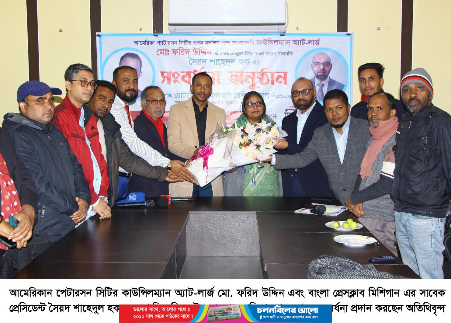 আমেরিকান পেটারসন সিটির প্রথম মুসলিম ও বাংলাদেশী কাউন্সিলম্যান অ্যাট-লার্জ রাটগার্স ইউনিভার্সিটির সহকারি অধ্যাপক মো. ফরিদ উদ্দিন এবং বাংলা প্রেসক্লাব মিশিগান এর সাবেক প্রেসিডেন্ট ও বাংলাদেশী আমেরিকান পাবলিক এফেয়ার্স কমিটির নির্বাহী সহ সভাপতি সৈয়দ শাহেদুল হককে সাপ্তাহিক সিলেটের আওয়াজ পত্রিকার পক্ষ থেকে সংবর্ধনা প্রদান করা হয়েছে।