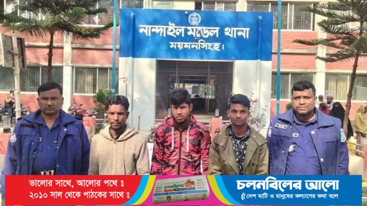 ময়মনসিংহ জেলা পুলিশ সুপার ও অতিরিক্ত পুলিশ সুপার গৌরীপুর সার্কেল এর দিকনির্দেশনা মোতাবেক সড়কে চাঁদাবাজ ও মাদকমুক্ত নান্দাইল গড়ার ল্েয শনিবার (২০ জানুয়ারি) নান্দাইল মডেল থানা পুলিশ ফোর্স বিশেষ অভিযান পরিচালনা উপজেলার বাহাদুরনগর গ্রামের বেপারী বাড়ির মোড় থেকে বিশিষ্ট মাদক ব্যবসায়ী ঈশ্বরগঞ্জ উপজেলার শ্রীরামপুর গ্রামের মৃত আঃ মালেকের পুত্র কাজিম উদ্দিন (৩০)কে ২০ পিস ইয়াবার ট্যাবলেট এবং এক বছরের সাজাপ্রাপ্ত ওয়ারেন্টভুক্ত আসামি আব্দুল কাইয়ুমকে গ্রেফতার করা হয়। এছাড়াও ময়মনসিংহ-কিশোরগঞ্জ হাইওয়ে সড়কের নান্দাইল বাসস্ট্যান্ড এলাকায় অবৈধভাবে অটোরিকশা, সিএনজি এবং পিক-আপ গাড়ি হইতে চাঁদা উত্তোলনের দায়ে উপজেলা নির্বাহী কর্মকর্তার উপস্থিততে যৌথ অভিযান পরিচালনা করে পাছঁপাড়া গ্রামের মৃত আবু বক্কর সিদ্দিকের পুত্র মোঃ আল আমিন (২৮), ঝালুয়া গ্রামের মোঃ ফরজুল হকের পুত্র মোঃ মাজাহারুল ইসলাম (৩০), চার আনিপাড়া গ্রামের মোঃ আবুল হাসেমের পুত্র মোঃ মামুন হাসান (২২) সর্ব থানা- নান্দাইলদেরকে গ্রেফতার পূর্বক ভ্রাম্যমান আদালতের বিজ্ঞ নির্বাহী ম্যাজিস্ট্রেট কর্তৃক ১৮৬০ সালের দণ্ডবিধি আইনের ২৯১ ধারা মোতাবেক প্রত্যেককে এক মাসের সাজা প্রদান করা হয়।