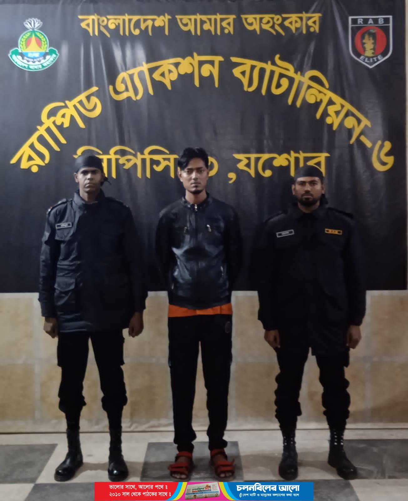 শুক্রবার সন্ধ্যায় রাজবাড়ী জেলার গোয়ালন্দ থানা এলাকায় অভিযান চালিয়ে তাকে গ্রেফতার করে র্যাব -৬, যশোর ও র্যাব ১০, ফরিদপুরে ক্যাম্পের যৌথ আভিযানিক দল। বিপুল হোসেন (২৬) অভয়নগর উপজেলার গরুর হাটখোলা, শিমুলতলা রোড এলাকার জাহিদ গাজীর ছেলে।