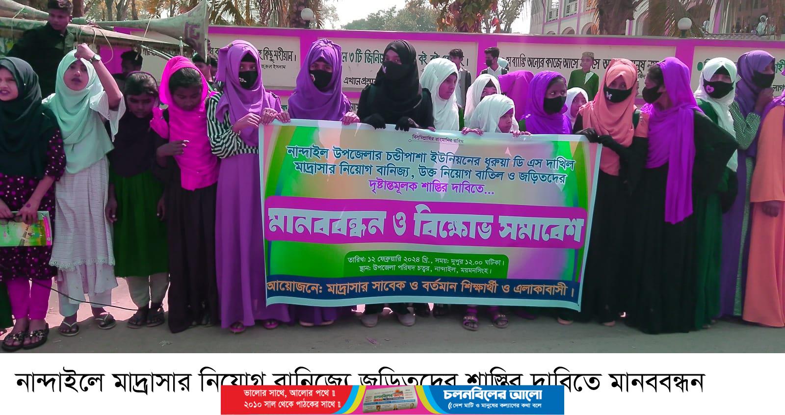 নান্দাইলে মাদ্রাসার নিয়োগ বানিজ্যে জড়িতদের শাস্তির দাবিতে মানববন্ধন
