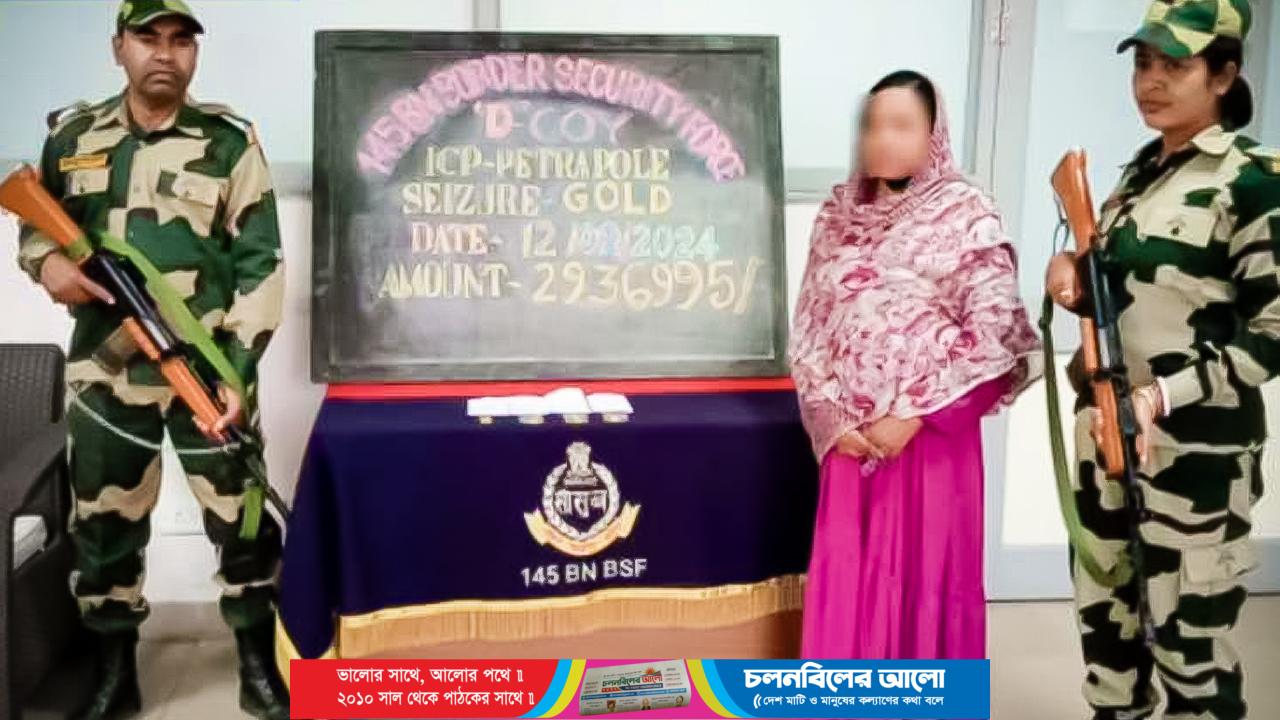 ভারতের পেট্রাপোল কাস্টমসে ৪৬৬ গ্রাম ওজনের ৪টি স্বর্ণের বারসহ নাজনীন নাহার নামে বাংলাদেশি এক পাসপোর্টধারীকে আটক হয়েছে। এসময় গোঁপন সংবাদে তাকে ধরে এই স্বর্নবার উদ্ধার করে সীমান্তরক্ষী বিএসএফ সদস্যরা। তিনি বেনাপোল চেকপোষ্ট হয়ে ভারতে গিয়েছিলেন। তাকে জিজ্ঞাসাবাদ শেষে পেট্রাপোল থানা পুলিশে সোপর্ট করেছে বিএসএফ।