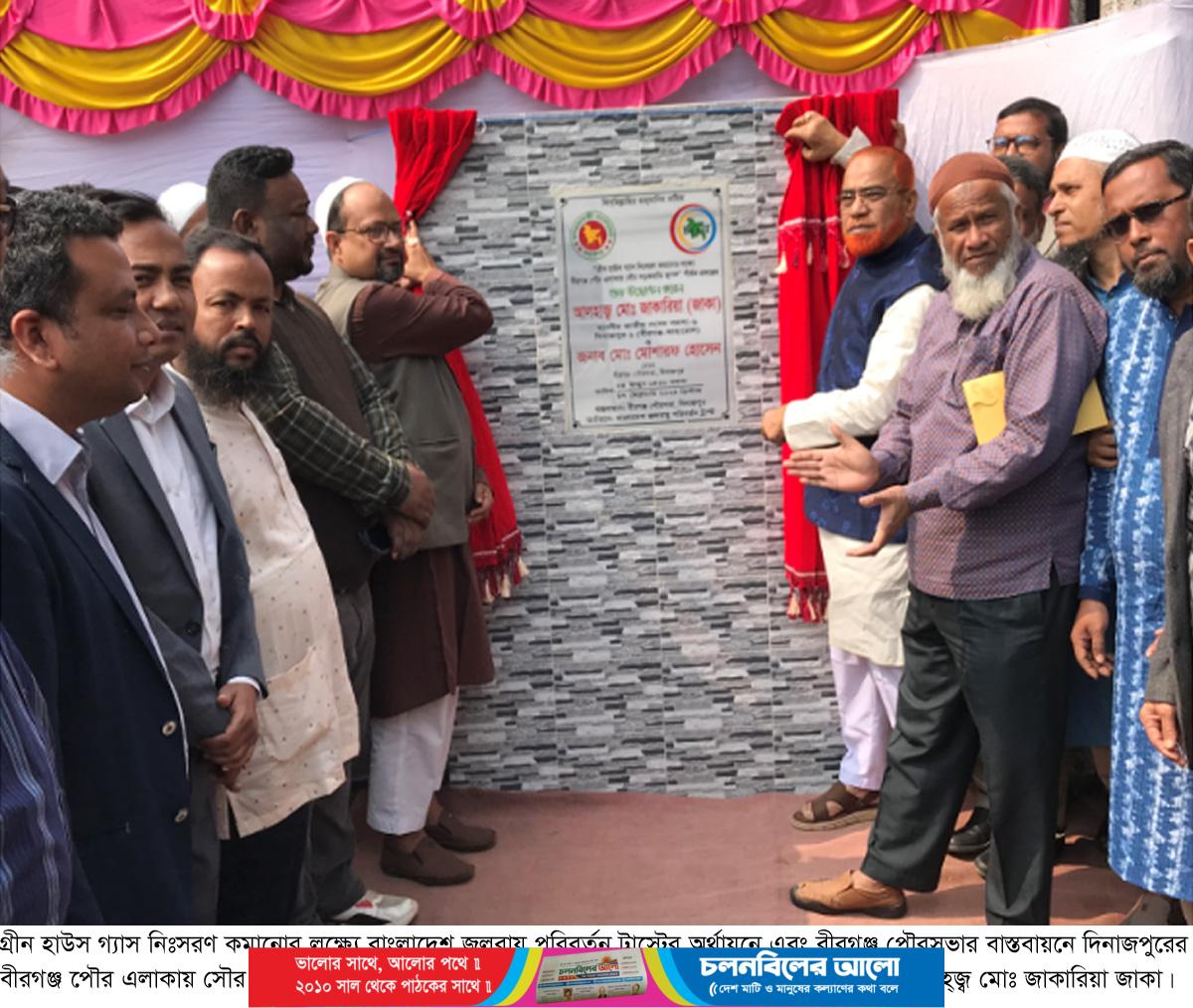 শনিবার দুপুরে গ্রীন হাউস গ্যাস নিঃসরণ কমানোর লক্ষ্যে বাংলাদেশ জলবায়ু পরিবর্তন ট্রাস্টের অর্থায়নে এবং বীরগঞ্জ পৌরসভার বাস্তবায়নে ২কোটি টাকা ব্যয়ে বীরগঞ্জ পৌর এলাকায় ১৫০টি সৌর সড়কবাতি স্থাপন শীর্ষক প্রকল্পের শুভ উদ্বোধন শেষে বীরগঞ্জ পৌরসভার আয়োজনে সংর্বধনা অনুষ্ঠানে তিনি একথা বলেন।