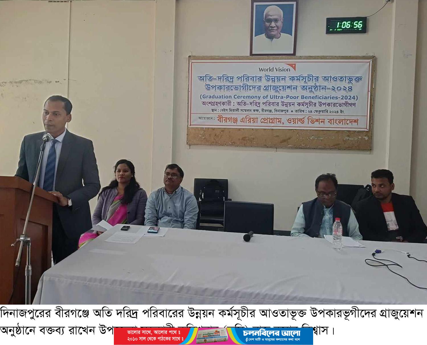 দিনাজপুরের বীরগঞ্জে ওযার্ল্ড ভিশন বাংলাদেশ বীরগঞ্জ এপি’র আয়োজনে অতি দরিদ্র পরিবার উন্নয়ন কর্মসূচীর গ্রাজুয়েশন অনুষ্ঠান অনুষ্ঠিত হয়েছে।