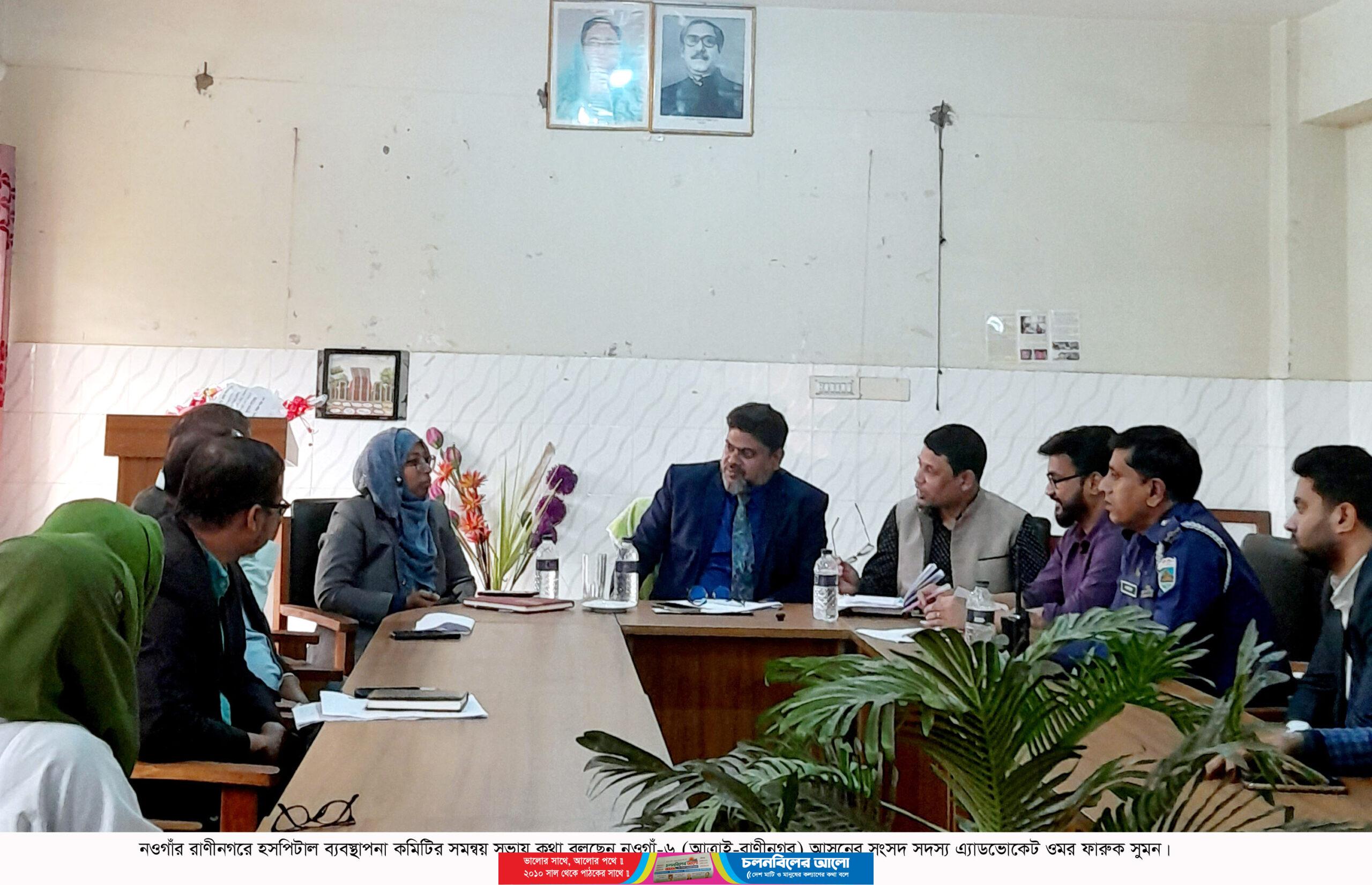 নওগাঁর রাণীনগরে উপজেলা স্বাস্থ্য কমপ্লেক্সের ব্যবস্থাপনা কমিটির সমন্বয় সভা অনুষ্ঠিত হয়েছে। রবিবার দুপুরে নওগাঁ-৬ (আত্রাই-রাণীনগর) আসনের সংসদ সদস্য এ্যাডভোকেট ওমর ফারুক সুমন’র সভাপতিত্বে স্বাস্থ্য কমপ্লেক্সের হল রুমে এ সভা অনুষ্ঠিত হয়।