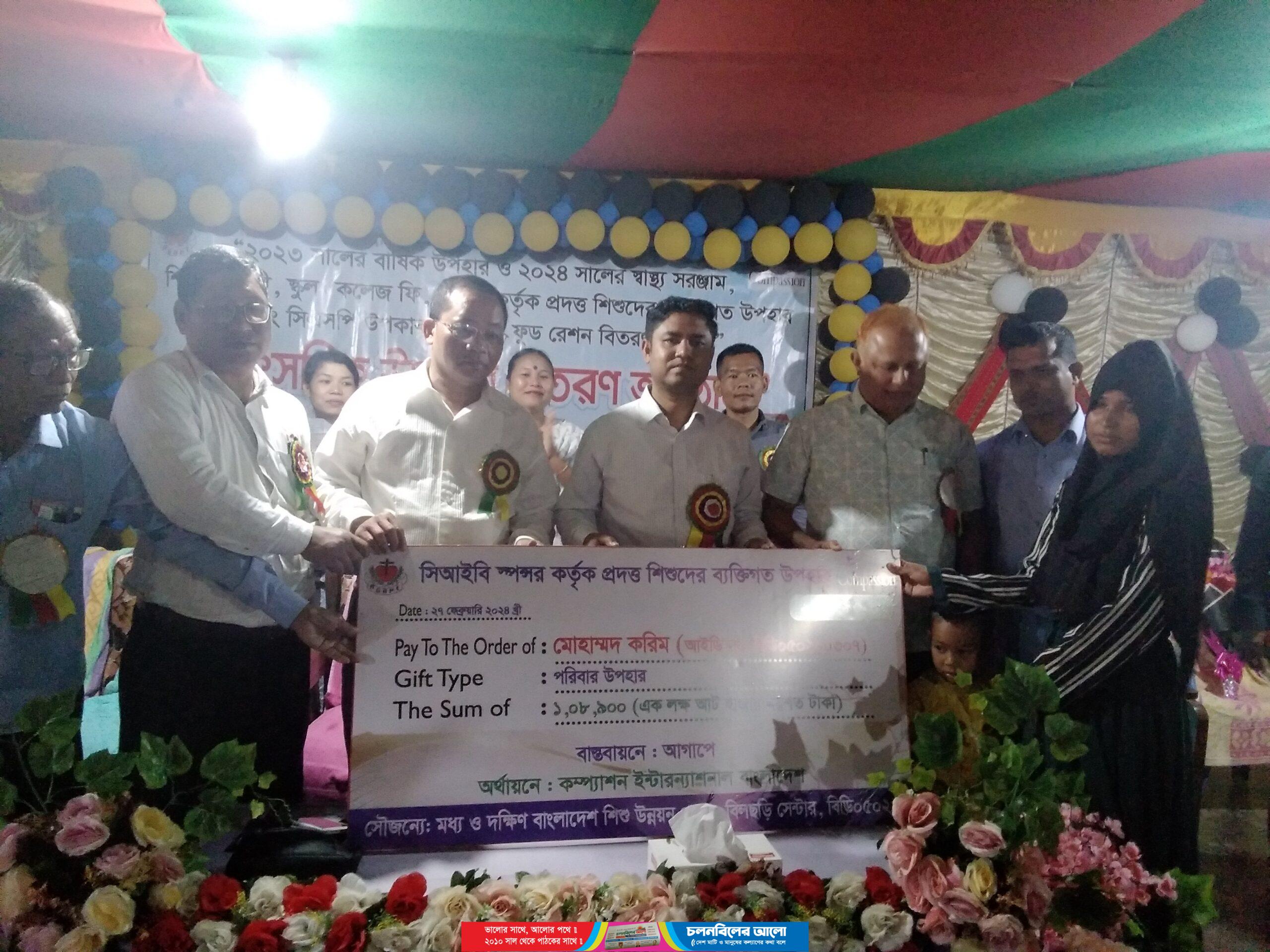 প্রসংগত,স্পন্সর মাধ্যমে শিশু ছাত্র মোহাম্মদ করিমকে ১ লক্ষ ৮ ৯শত টাকা এবং পুস্পিতা জন্নাত ৪৬ হাজার ৬ শত ৯১ টাকার চেক বিতরণ করা হয়েছে। আর অন্যান্য বিতরনে ছিল কম্বল,বেডসিট,সাবান,টুথপেষ্ট,তে ল,সাইকেল ও গরু উপকারভোগীদের মাঝে দেওয়া হয়।