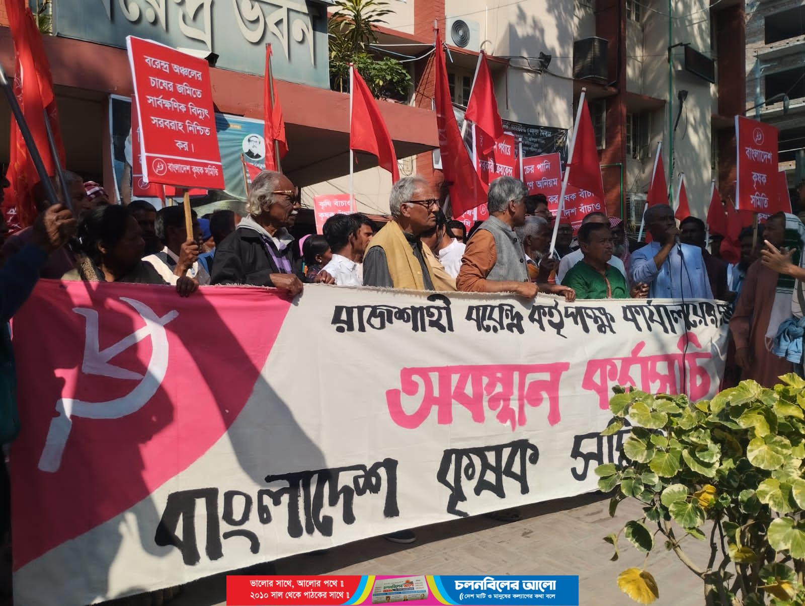 বরেন্দ্র অঞ্চলে গভীর নলকূপের সেচের পানি বিতরণে অনিয়ম, হয়রানির প্রতিবাদ, খাল ও জলাশয় সংস্কার এবং কৃষি জমিতে সেচের সার্বক্ষণিক বিদ্যুৎ সুবিধা নিশ্চিত করা সহ ৫ দফা দাবিতে অবস্থান কর্মসূচি পালন করেছে বাংলাদেশ কৃষক সমিতি।