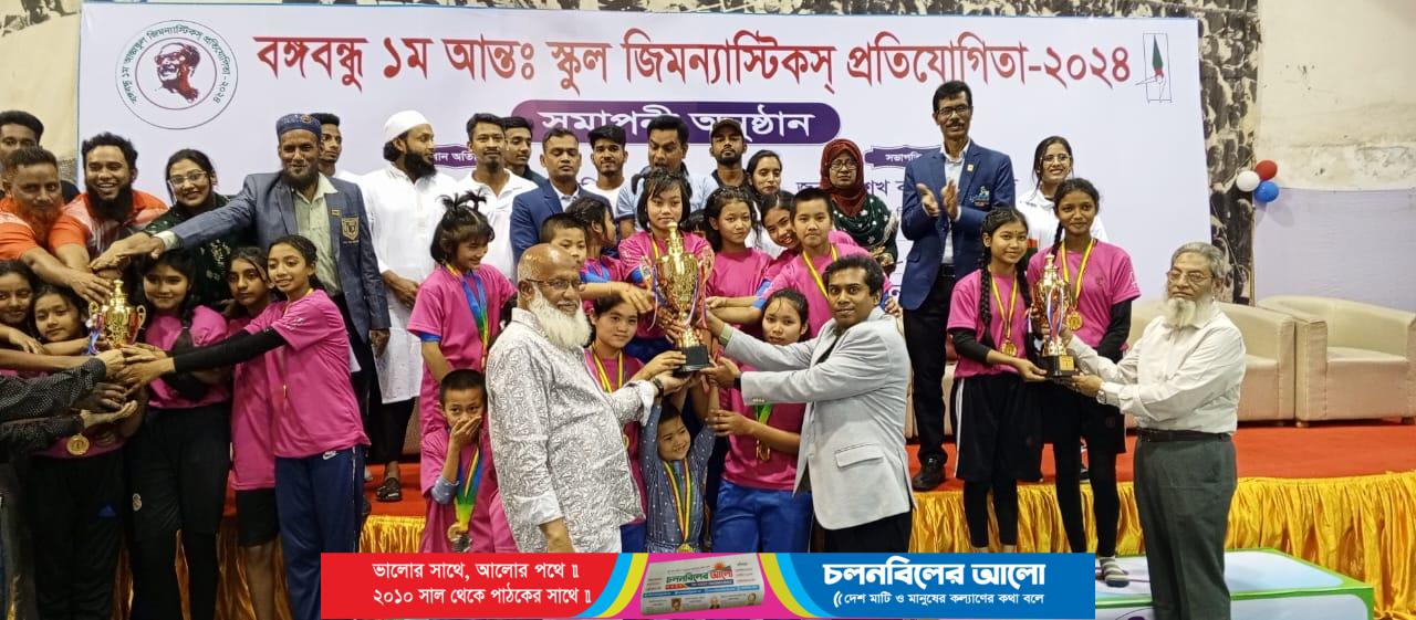 বাংলাদশে ক্রীড়া শক্ষিা প্রতষ্ঠিান (বিকেএেসপি) প্রথম রার্নাসআপ এবদনিাজপুর জলো ও ঈদগা উচ্চ বদ্যিালয় যৌথভাবে দিতিীয় রার্নাসআপ হয়। আন্তঃস্কুল জমিন্যাস্টকি সশষেে বজিয়ীদরে হাতে পুরস্কার তুলে দনে বাংলাদশে মহলিা ক্রীড়া সংস্থার সভাপতি মাহবুব আরা গনি।
