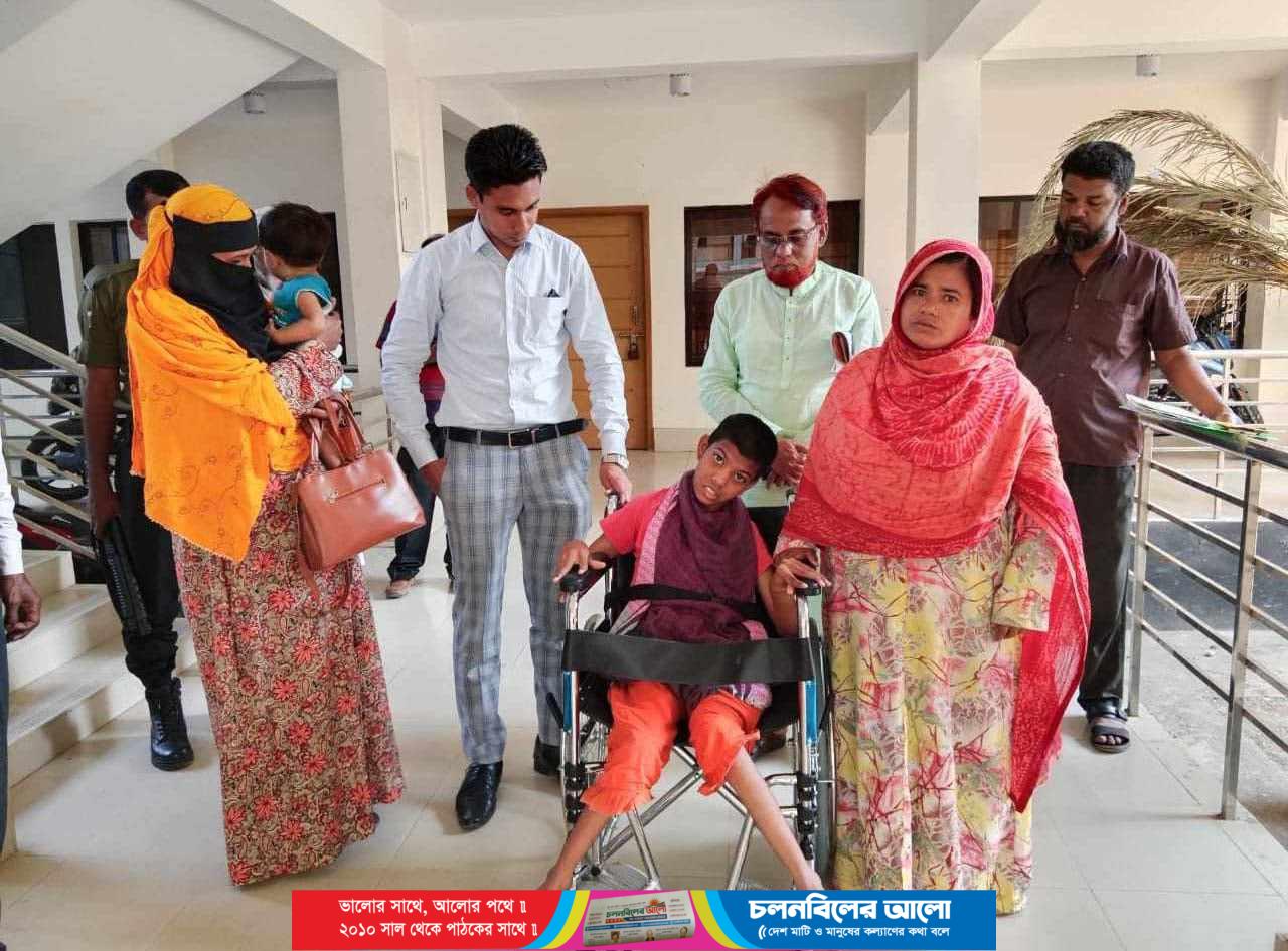 যশোরের অভয়নগরে শারীরিক প্রতিবন্ধীকে হুইলচেয়ার প্রদান করেছেন উপজেলা নির্বাহী কর্মকর্তা (ইউএনও) কে এম আবু নওশাদ। বুধবার (১৩ মার্চ) দুপুরে উপজেলা পরিষদ চত্বরে হুইলচেয়ারটি হস্তান্তর করা হয়। উপজেলার পায়রা ইউনিয়নের আড়পারা গ্রামের ওয়াদুদ মোল্লার মেয়ে শারিরীক প্রতিবন্ধী মাসুমা খাতুন (১৫) কে হুইলচেয়ার প্রদান করনে। হুইলচেয়ার পেয়ে মাসুমার মুখে হাসি ফুটে ওঠে আনন্দে। একটি হুইল চেয়ারের অভাবে মাসুমা চলাফেরা করতে পারছিলেন না। বিষয়টি অবগত হয়ে উপজেলা নির্বাহী কর্মকর্তা কে এম আবু নওশাদ জরুরি ভিত্তিতে হুইল চেয়ারটির ব্যবস্থা করে দিলেন। শারীরিক প্রতিবন্ধীকে হুইলচেয়ার বিতরণের সময় উপস্থিত ছিলেন নওয়াপাড়া প্রেসক্লাবের সভাপতি নজরুল ইসলাম মল্লিক।শারীরিক প্রতিবন্ধী মাসুমা খাতুনের মা নার্গিস বেগম বলেন, আমার মেয়ে জন্ম থেকেই শারিরিক প্রতিবন্ধী। বয়সের অনুপাতে আমার মেয়ের শারীরিক বিকাশ ঘটেনি। আস্তে আস্তে বড় হলেও চলাফেরা করতে পারে না এবং হাঁটা-চলাও করতে পারে না। অর্থের অভাবে এতদিন মেয়েকে একটি হুইল চেয়ার কিনে দিতে পারিনি। হুইল চেয়ারের বসে আমার মেয়ে এখন সুন্দর ভাবে চলাফেরা করতে পারবে।