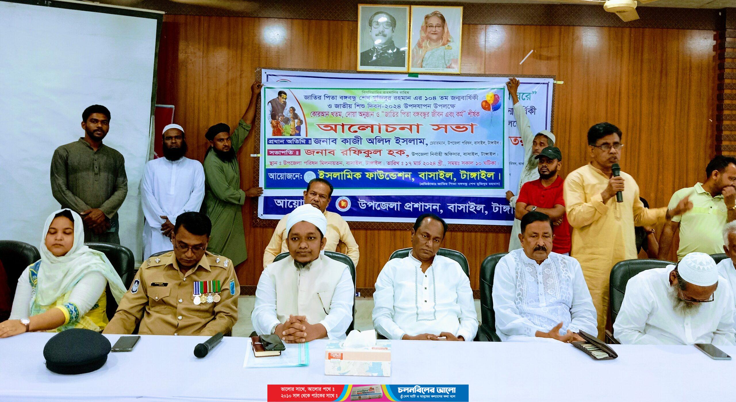 ‘বঙ্গবন্ধুর জন্মদিন, শিশুর জীবন করো রঙিন’ এ প্রতিপাদ্যকে সামনে রেখে টাঙ্গাইল জেলার বাসাইল উপজেলায় ইসলামিক ফাউন্ডেশনের উদ্যোগে জাতির পিতা বঙ্গবন্ধু শেখ মুজিবর রহমানের ১০৪ তম জন্মবার্ষিকী ও জাতীয় শিশু দিবস-২০২৪ যথাযোগ্য মর্যাদায় পালন করা হয়েছে।