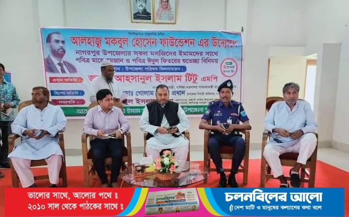 শনিবার( ২৩ মার্চ)নাগরপুর উপজেলা পরিষদ মিলনায়তনে আলহাজ্ব মকবুল হোসেন ফাউন্ডেশনের উদ্যোগে ও ইসলামিক ফাউন্ডেশন নাগরপুর উপজেলা শাখার সার্বিক সহযোগিতায় মাহে রমজান উপলক্ষে এ মতবিনিময় ও দোয়া মাহফিলের আয়োজন করা হয়।
