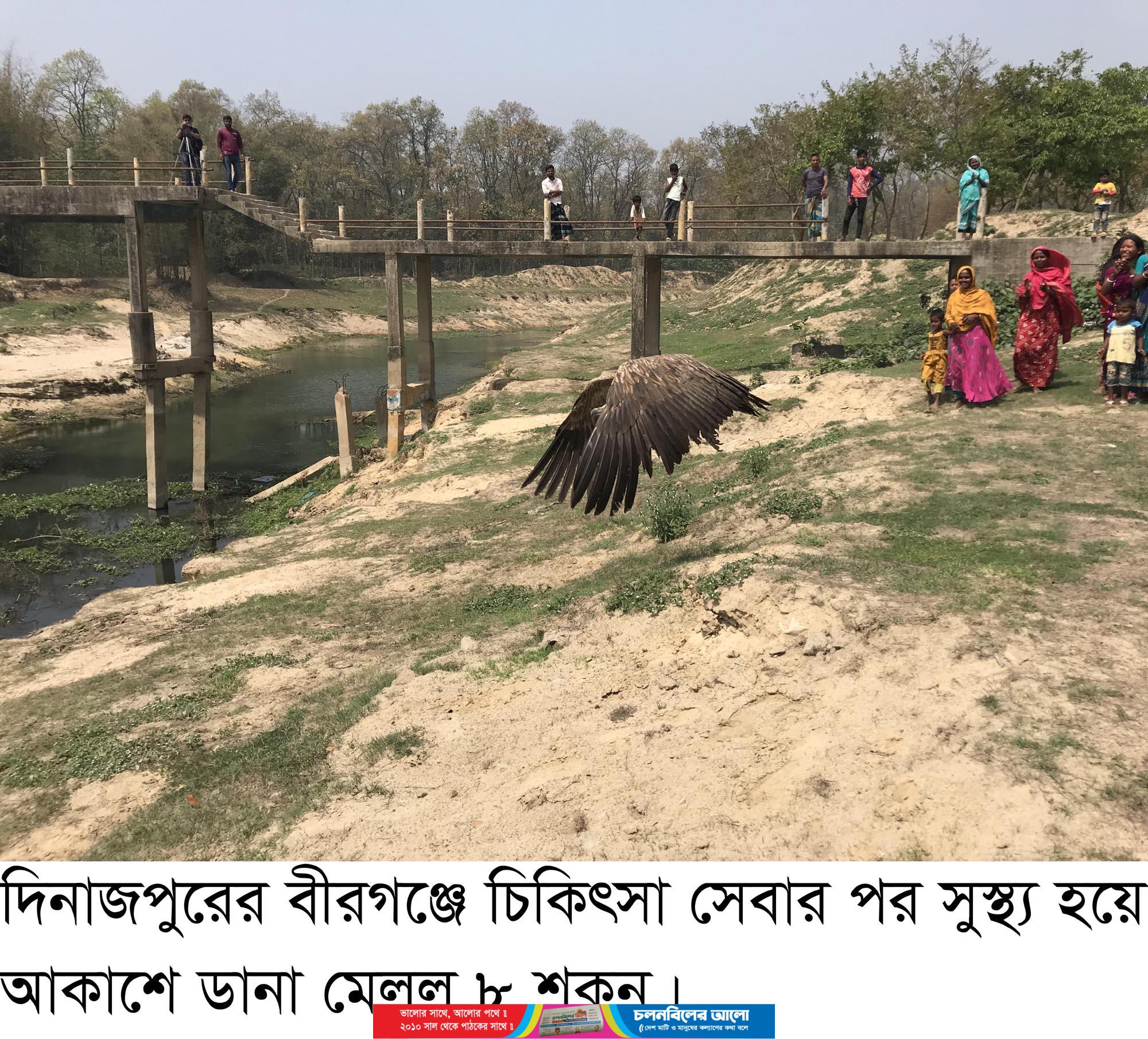 তাদের চিকিৎসা সেবা দিয়ে সুস্থ্য করে তোলার পর ৪ এপ্রিল বৃহস্পতিবার সকাল ১১টায় আনুষ্ঠানিক ভাবে ৮টি শকুনকে প্রকৃতিতে অবমুক্ত করেন বিভাগীয় বন কর্মকর্তা দিনাজপুর সামাজিক বন বিভাগ মোঃ বশিরুল আল মামুন।