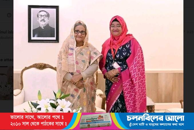 প্রধানমন্ত্রী শেখ হাসিনার সঙ্গে সৌজন্য সাক্ষাৎ করেছেন সিরাজগঞ্জের উল্লাপাড়া উপজেলা আওয়ামী লীগের যুগ্ম সাধারণ সম্পাদক সেলিনা মির্জা মুক্তি। তিনি সিরাজগঞ্জ -৪ উল্লাপাড়া আসনের সাবেক সংসদ সদস্য বীর মুক্তিযোদ্ধা মরহুম আব্দুল লতিফ মির্জার কন্যা। বৃহস্পতিবার সন্ধ্যায় সংসদ সচিবালয়ে প্রধানমন্ত্রীর কার্যালয়ে তারা এ সৌজন্য সাক্ষাৎ করেন। উভয়ের মধ্যে এ সময় আগামী উপজেলা পরিষদ নির্বাচন ও স্মার্ট বাংলাদেশ গঠনের রূপরেখা নিয়ে প্রায় ৩০ মিনিট আলোচনা অনুষ্ঠিত হয়।