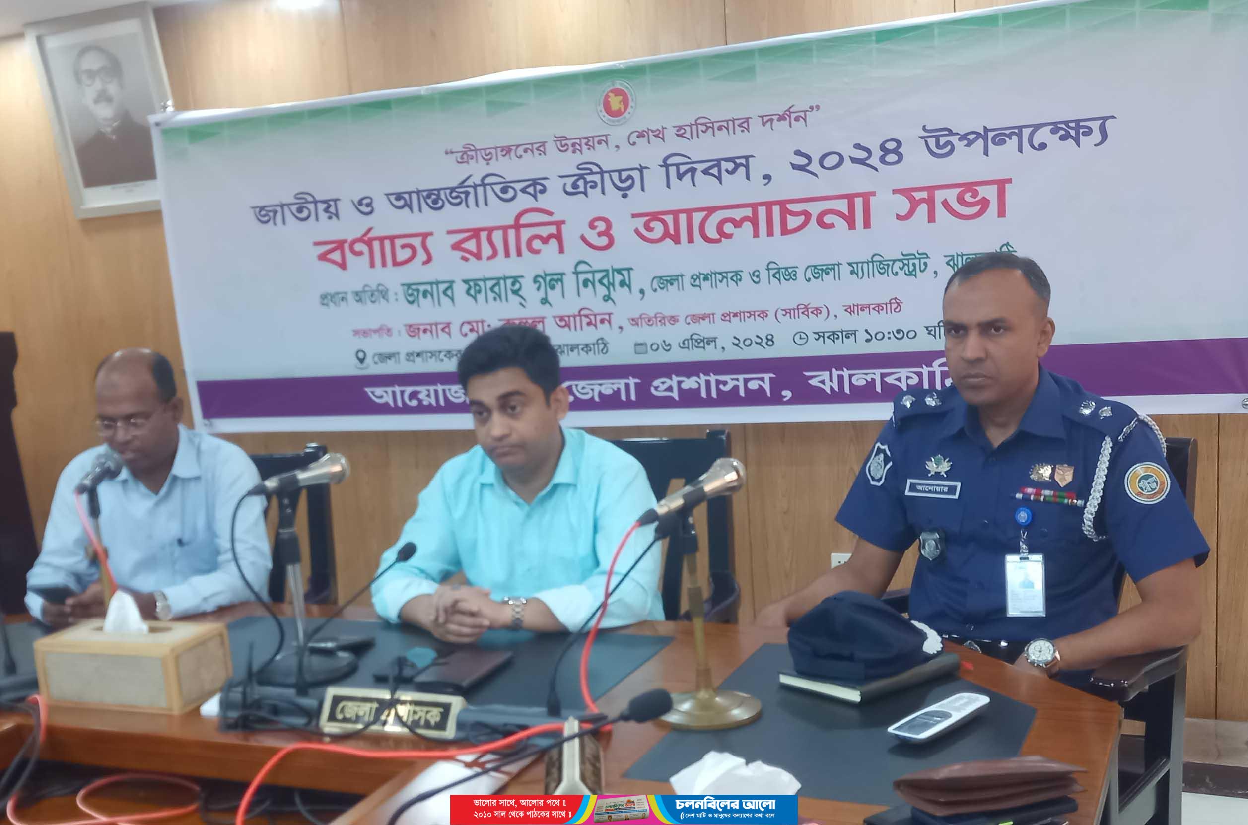 ক্রীড়াঙ্গনের উন্নয়ন, শেখ হাসিনার দর্শণ” শীর্ষক শ্লোগানকে সামনে রেখে জাতীয় ও আন্তর্জাতিক ক্রীড়া দিবস, ২০২৪ উপলক্ষ্যে বর্ণাঢ্য র‌্যালি ও আলোচনা সভা অনুষ্ঠিত হয়েছে। শনিবার (৬ এপ্রিল) সকাল সাড়ে ১০টায় জেলা প্রশাসনের আয়োজনে শহরের প্রধান প্রধান সড়ক প্রদক্ষিণ শেষে জেলা প্রশাসক কার্যালয়ের সামনে র‌্যালি শেষ হয়। পরে জেলা প্রশাসন সম্মেলন কক্ষে অতিরিক্ত জেলা প্রশাসক (সার্বিক) মো: রুহুল আমিনের সভাপতিত্বে আলোচনা সভা অনুষ্ঠিত হয়। এতে প্রধান অতিথি হিসেবে উপস্থিত ছিলেন জেলা প্রশাসক ফারাহ্ গুল নিঝুম এর পক্ষে অতিরিক্ত জেলা প্রশাসক (রাজস্ব) মোহাম্মদ মামুন শিবলী।