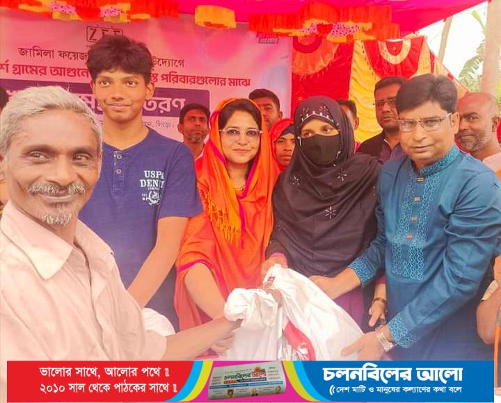 সিংড়ায় আগুনে ক্ষতিগ্রস্ত পরিবারের মাঝে জামিলা ফয়েজ ফাউন্ডেশনের ঈদসামগ্রী বিতরণ