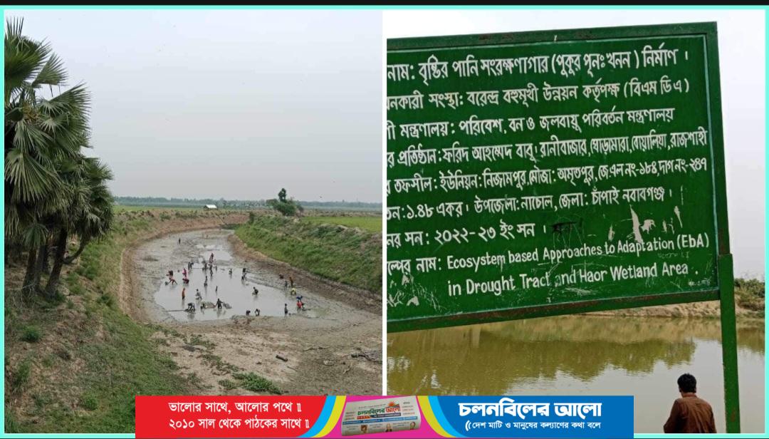 সরেজমিনে গিয়ে ইবিএ প্রকল্পের আওতায় (তানোর, নাচোল, সাপাহার) পুকুর পূন: খননে দূর্নীতি চিত্র দৃশ্যমান।১০ টি পুকুরে ঘুরে দৃশ্য মান তেমন কোন কাজ না হলেও প্রতিটি পুকুর খননে ৮ থেকে ১০ লাখ টাকা ব্যয় ধরা হয়েছে।৩ হাজার টাকার সাইন বোর্ডে ৩০ হাজার টাকা ব্যয় ধরে বিল উত্তোলন করা হয়েছে।