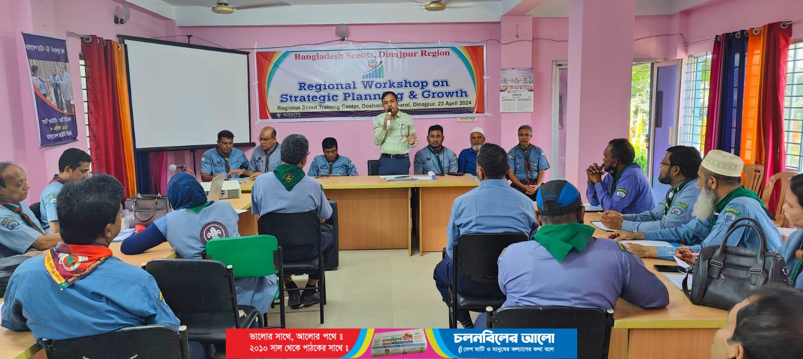 বাংলাদেশ স্কাউটস দিনাজপুর অঞ্চলের ব্যবস্থাপনায় ও জাতীয় কার্যালয়ের স্ট্র্যাটেজিক প্লানিং ও গ্রোথ বিভাগের পরিচালনায় দশমাইলস্থ স্কাউট প্রশিক্ষণ কেন্দ্রে ২০৩০ সালের মধ্যে দিনাজপুর অঞ্চলে (রংপুর বিভাগে) ৭ লক্ষ স্কাউট তৈরীর লক্ষ্যে ২৩ এপ্রিল মঙ্গলবার আঞ্চলিক স্কাউট প্রশিক্ষণ কেন্দ্র দশমাইলে ওয়ার্কশপ অনুষ্ঠিত হয়েছে। এতে বাংলাদেশ স্কাউটস দিনাজপুর অঞ্চলের আওতাধীন ৮ টি জেলা ও ৫৮টি উপজেলা স্কাউটসের বর্তমান স্কাউট পরিসংখ্যান তুলে ধরে প্ল্যান বাস্তবায়নে করণীয় সম্পর্কে দিক নির্দেশনা প্রদান করা হয়। ওয়ার্কশপে (২০২২-২০৩০) এর স্ট্র্যাটেজিক প্ল্যান উপস্থাপন করে অগ্রাধিকার এলাকা চিহ্নিতকরণ, সম্ভাব্য সমস্যা ও তা সমাধানের উপায় নির্ধারন বিষয়ে আলোকপাত করা হয়।