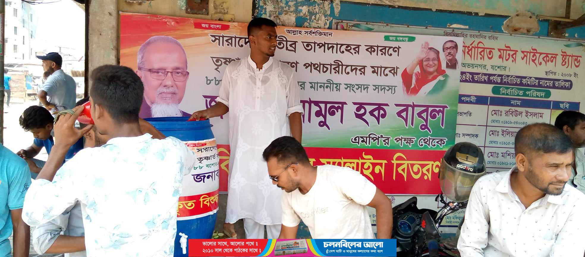 যশোর-৪ আসনের সংসদ সদস্য ও অভয়নগর উপজেলা আওয়ামী লীগের সভাপতি এনামুল হক বাবুলের পক্ষ থেকে তীব্র তাপদাহে তৃষ্ণার্ত পথচারীদের মাঝে স্যালাইন মিশ্রিত বিশুদ্ধ খাবার পানি বিতরণ করা হয়েছে।