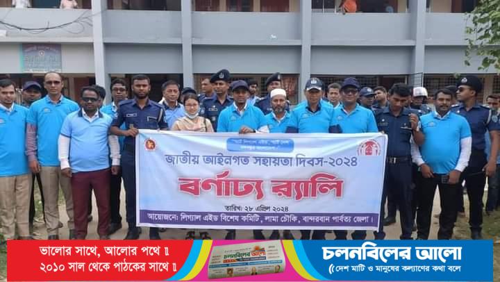 ‘স্মার্ট লিগ্যাল এইড, স্মার্ট দেশ বঙ্গবন্ধুর বাংলাদেশ’ প্রতিপাদ্য সামনে রেখে বর্ণাঢ্য শোভাযাত্রার মাধ্যমে বান্দরবানের লামা উপজেলায় ‘জাতীয় আইনগত সহায়তা দিবস.২৪’ পালিত হয়েছে।