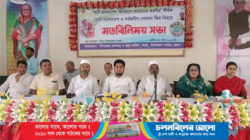 “সুখে ভরবে আগামী দিন, পেনশন এখন সবজনীন” এ স্লোগানকে ধারণ করে লামা উপজেলা পরিষদের নবনির্মিত সভাকক্ষে উপজেলা প্রশাসন ও জেলা তথ্য অফিসের আয়োজনে ‘স্মার্ট বাংলাদেশ বিনির্মাণে আমাদের করণীয়’ শীর্ষক স্মার্ট বাংলাদেশ ও সর্বজনীন পেনশন স্কীম নিয়ে মতবিনিময় সভা অনুষ্ঠিত হয়। মঙ্গলবার (৩০ এপ্রিল) সকাল ১০ টায় উপজেলা পরিষদ হলরুমে এসময়