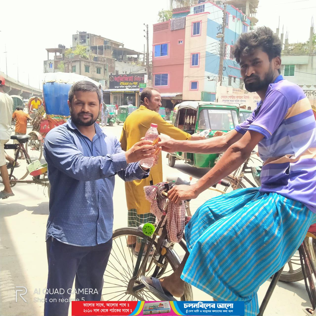 বুধবার(০১ মে) দুপুরে যুব বিভাগের আহবায়ক মু.আবুল হোসাইনের নেত্বত্বে একদল যুবকদের নিয়ে ঢাকা রাজধানীর জুড়াইন ও ধোলাইরপাড় এলাকায় আগত যাত্রী,পথচারী,শ্রমিক,ছাত্র ও ব্যবসায়ীদের মাঝে সুপেয় পানি ও খাবার স্যালাইন বিতরণ করা হয়।
