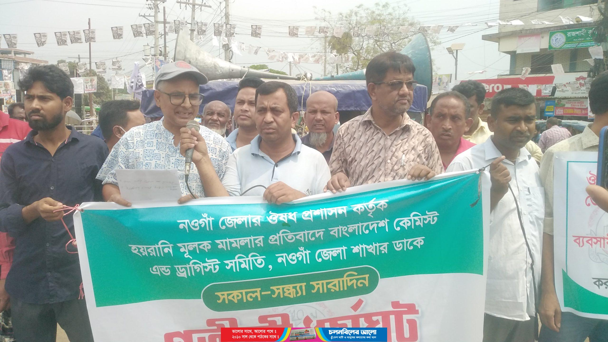 নওগাঁয় ঔষধ প্রশাসন কর্তৃক রাসেদ মেডিকেল স্টোরের মালিক রাসেদুল ইসলাম এবং ইমতিয়াজ মেডিকেল স্টোরের মালিক আবুল কালাম আজাদের বিরুদ্ধে হয়রানি মূলক মামলা প্রত্যাহার, ঔষধ বিপনন আইন ২০২৩ বাতিল, ঔষধ পরিদর্শক মোঃ তোফায়েল আহম্মেদকে প্রত্যাহার, অবৈধ ফুড সাপ্লিমেন্ট সরবরাহকারী এবং অবৈধ ফুড সাপ্লিমেন্ট যারা লেখেন তাদের আইনের আওতায় ানার দাবীতে ওইদিন বেলা ১১ টায় ওষধের দোকান বন্ধ রেখে উপজেলা সদরের জিরো পয়েন্টে মানববন্ধন করে বাংলাদেশ কেমিস্ট এন্ড ড্রাগিস্ট সমিতি, সাপাহার শাখা। এতে বক্তব্য রাখেন, সাপাহার উপজেলার কেমিস্ট এন্ড ড্রাগিস্ট সমিতির সভাপতি মোস্তাফিজুর রহমান বাদল ও সাবেক সভাপতি মোস্তাক আহম্মেদ প্রমূখ।